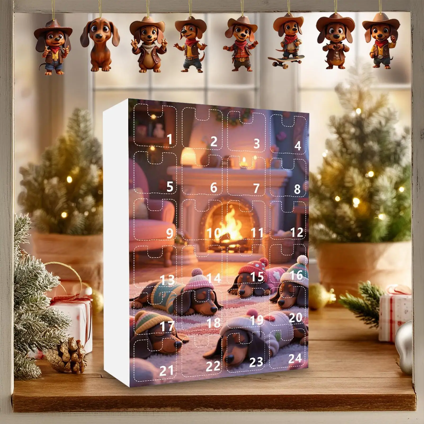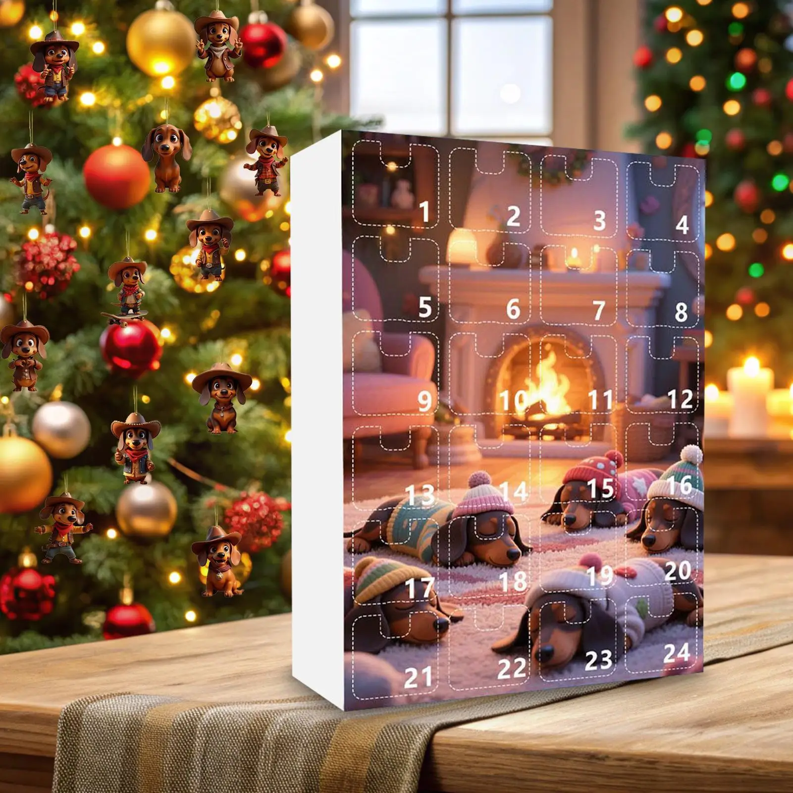 1 Box * Dachshund Christmas Calendar Advent (includes 24 flat acrylic ornaments)