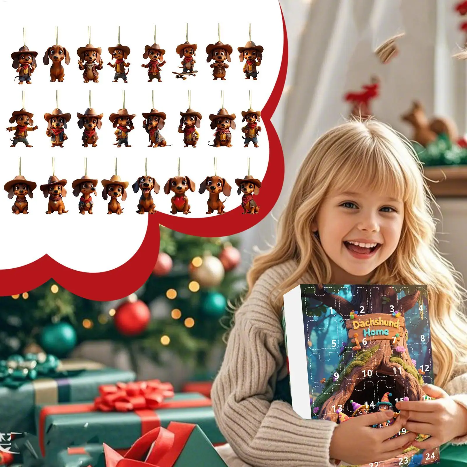 Enjoy the holiday season with an countdown calendar showcasing 2D acrylic dog charm pendants, versatile for decorating car rearview mirrors, walls, doors, or window, great for parties, vacations, and bringing smiles to adults and kids alike, capturing the charm of Christmas effortlessly.