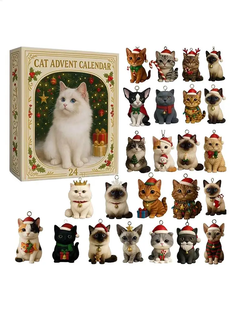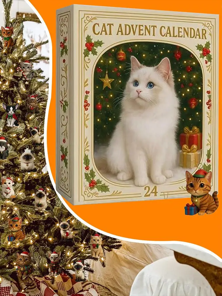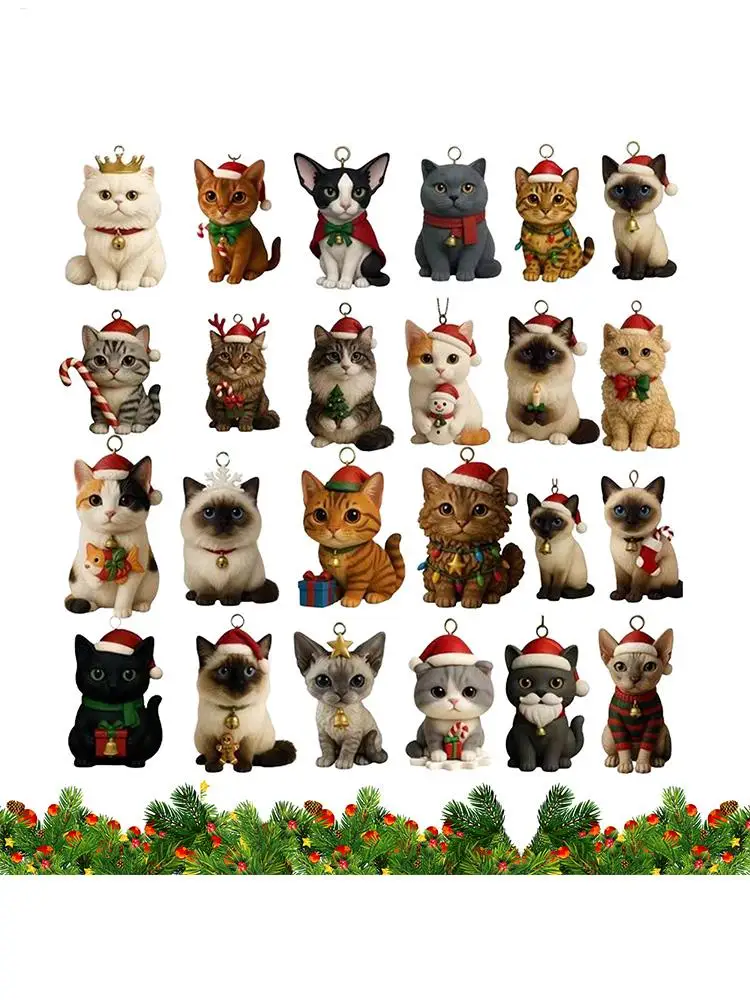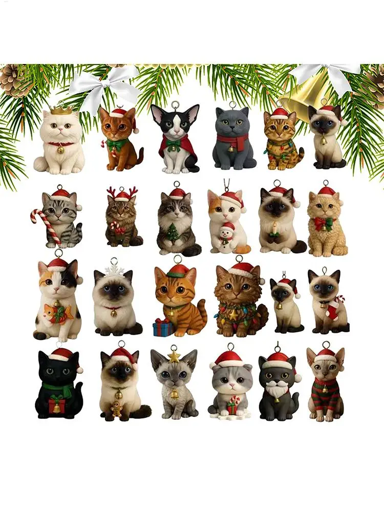 Cat Lovers Advent Calendar Christmas Countdown Calendar 2D Acrylic Cute Cat Calendar Artistic Holiday Ornament For Christmas