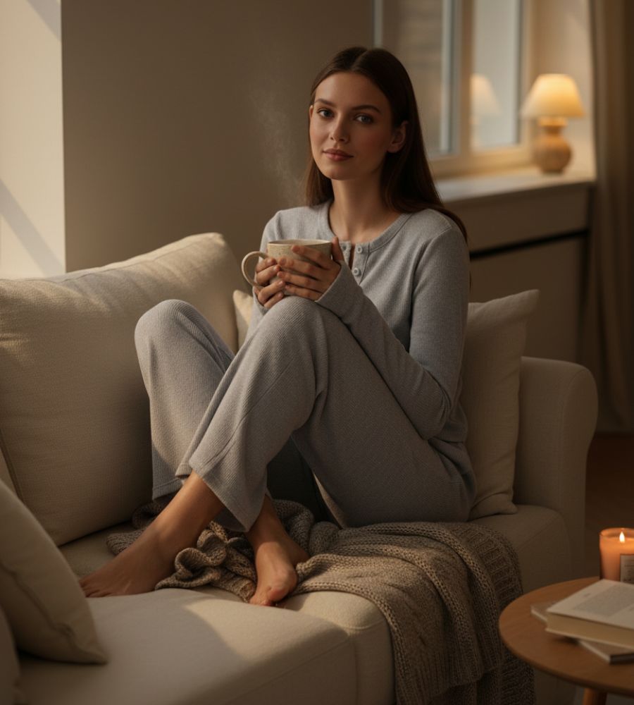 De dagen worden korter, de lucht frisser — en dit is het moment waarop je comfort opnieuw ontdekt. De Cozy Chic Lounge Set is gemaakt voor die ochtenden waarop je met een kop koffie aan tafel zit terwijl buiten de regen tikt. Voor avonden op de bank met een dekentje, series aan en niets dat knelt of kriebelt.