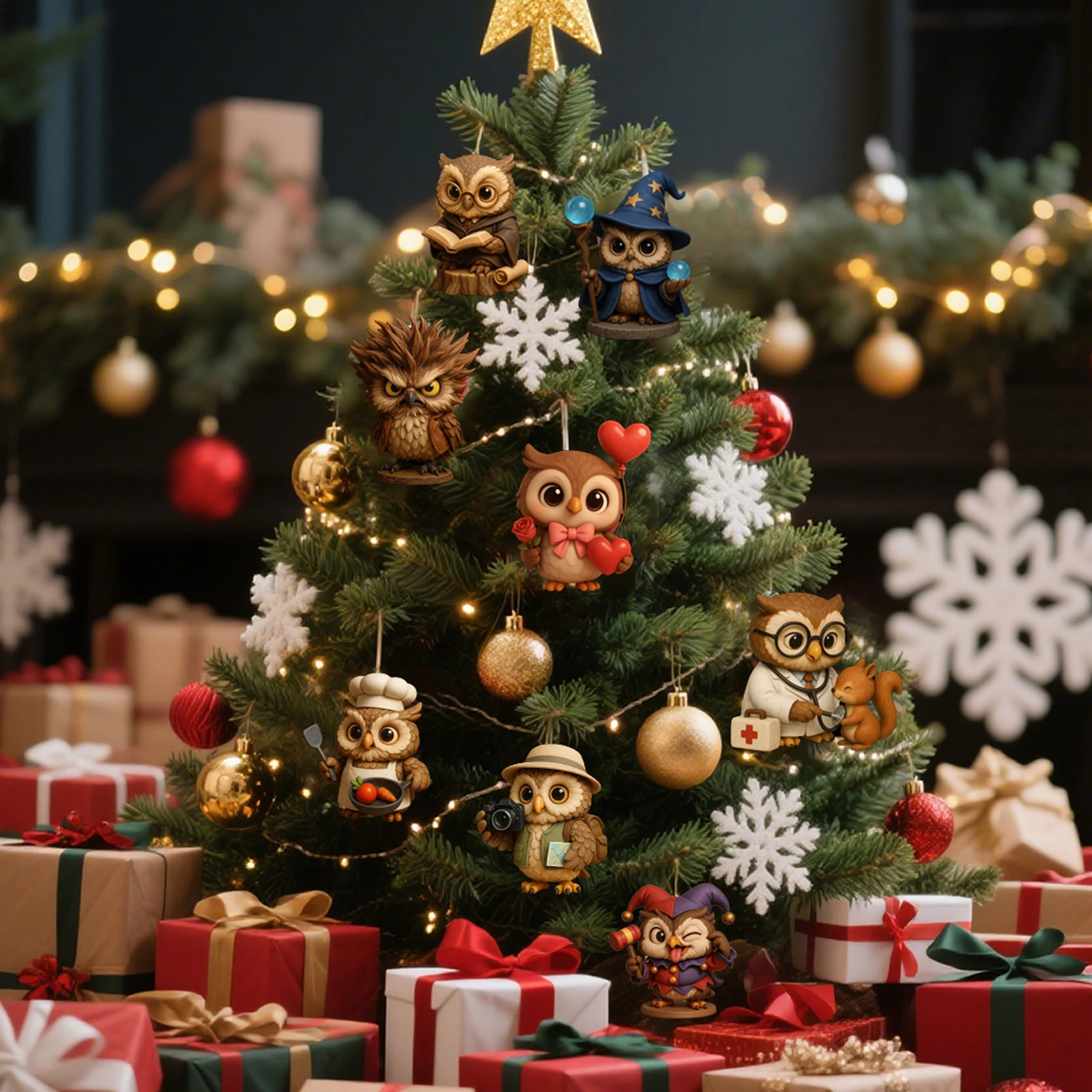 Owl 24 Days Christmas Countdown Calendar with 2D Flat Acrylic Owl Ornaments Christmas Advent Calendar Holiday Countdown Calendar for Christmas Tree Ornaments